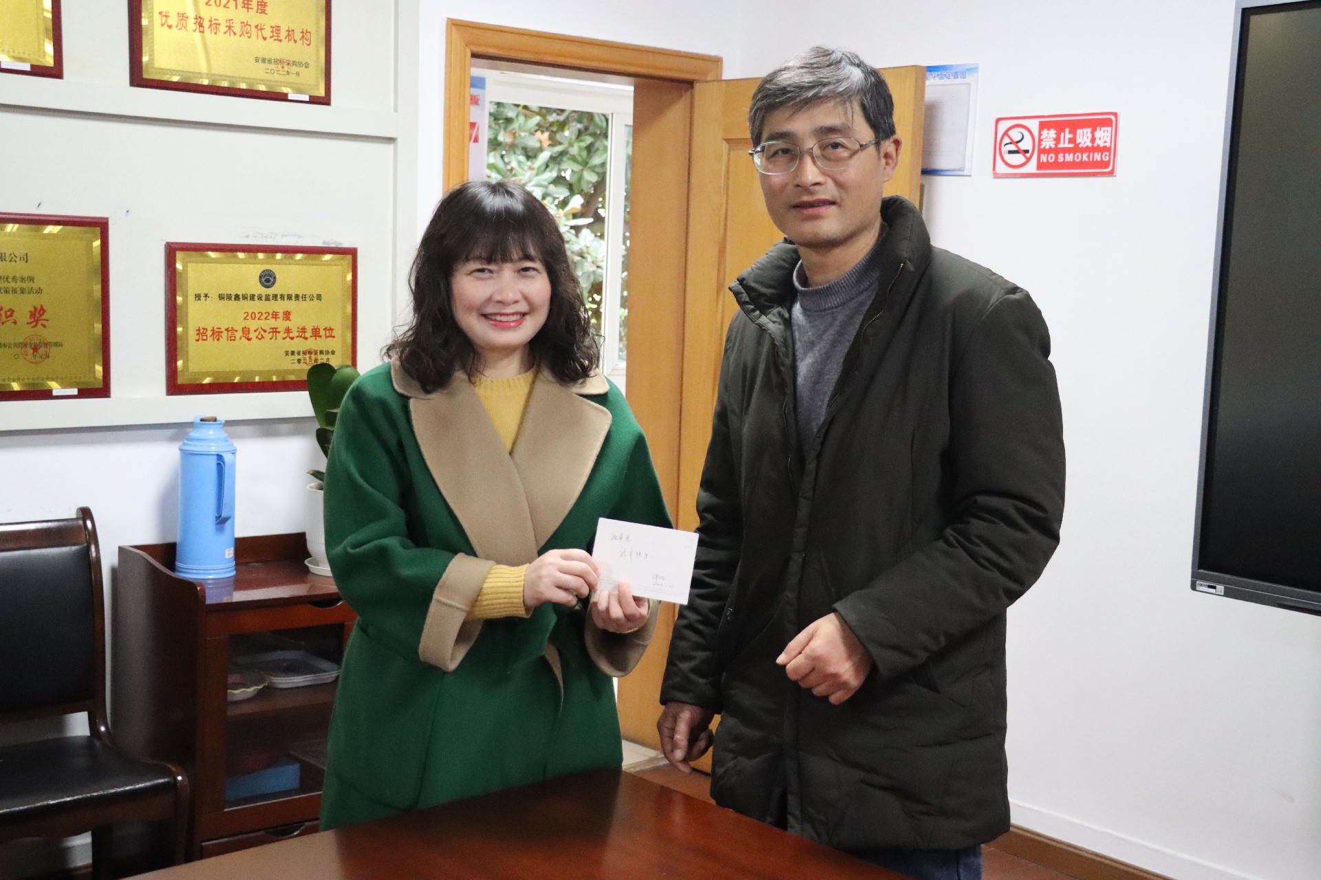 日前,集團公司副總工程師,公司黨支部副書記、經理黃紅慰問了“銅陵有色工程師”獲得者、電氣正高級工程師許紅兵。黃紅親切詢問他的工作和生活情況,并送上鮮花和慰問金,向其致以新春問候和美好祝福,鼓勵他在新的一年里繼續(xù)發(fā)揮引領作用,為企業(yè)高質量發(fā)展再立新功。